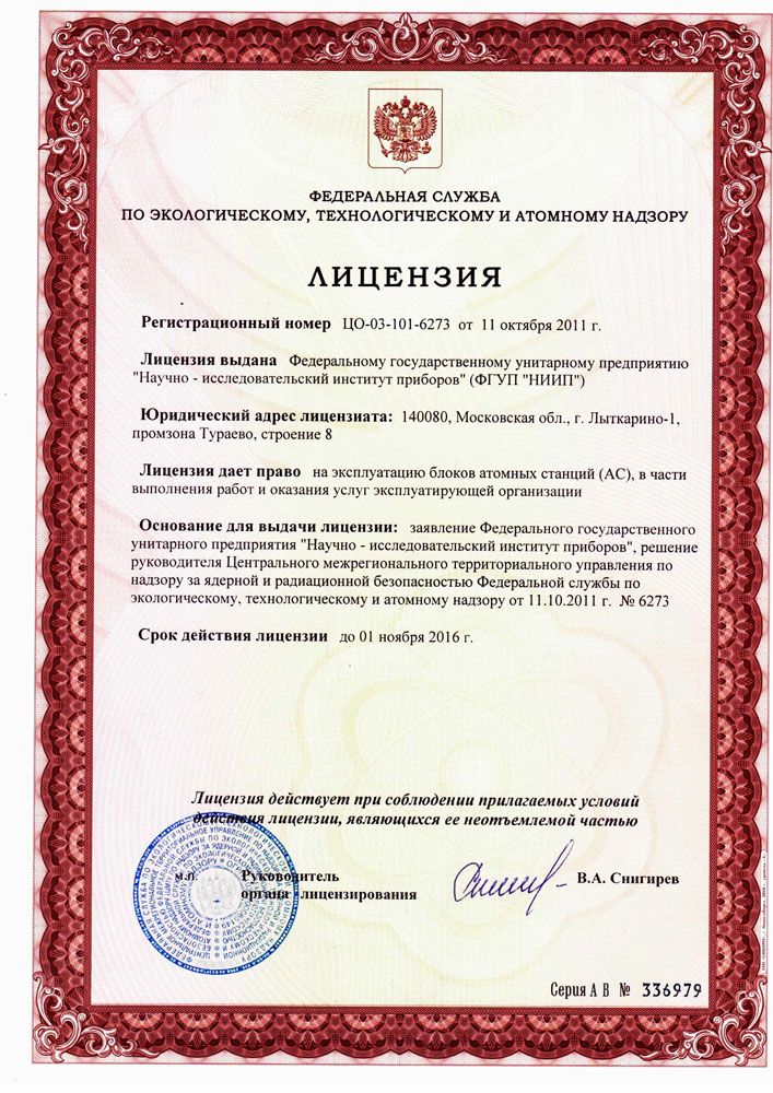 The Certificate on exploitation of the nuclear plant units as pertains to work implementation and rendering services to the operating organization.